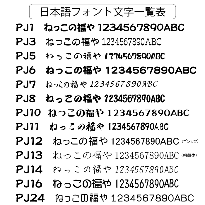 デザイン方法 文字のフォントとカラーを選んで、入れたい文字を連絡いただければ、こちらでイメージイラスト絵型を作成し承認していただきます。