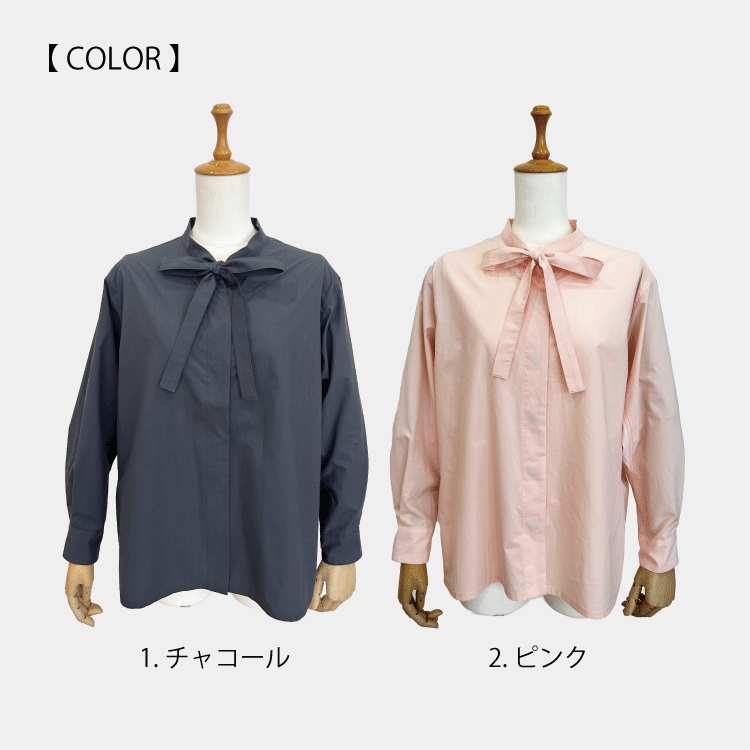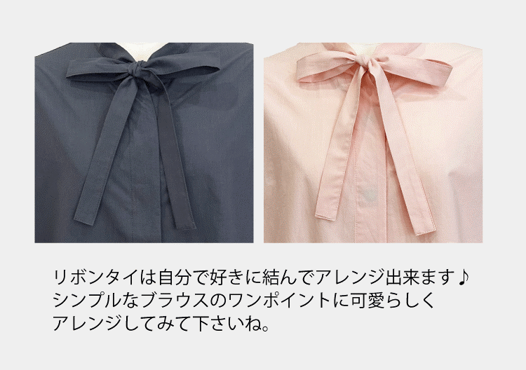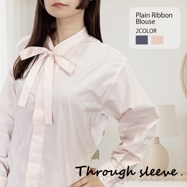 Through_sleeve リボン無地ブラウス